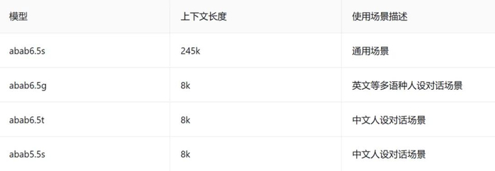 目前提供有MiniMax最新的abab 6.5系列模型和abab6模型。