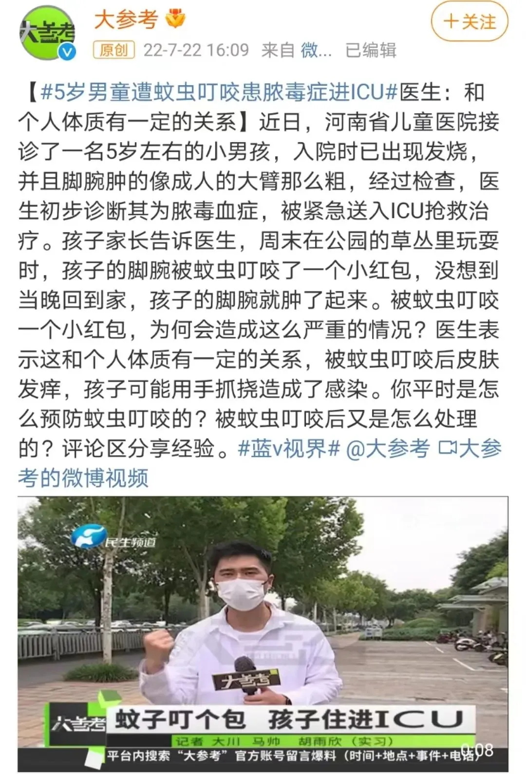 有人就被蚊子叮咬住进了ICU