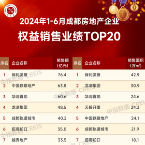 权益销售金额,是基于房企在项目中的股权比例计算的相应业绩,也更能体现企业自身的销售实力。二季度入市的新川天珺、天府和颂二期、西堂和煦均为保利四川100%控股的项目,再加上天府瑧悦等多个项目的热销,共同助力保利实现了较1季度增长超2倍的业绩飞跃。