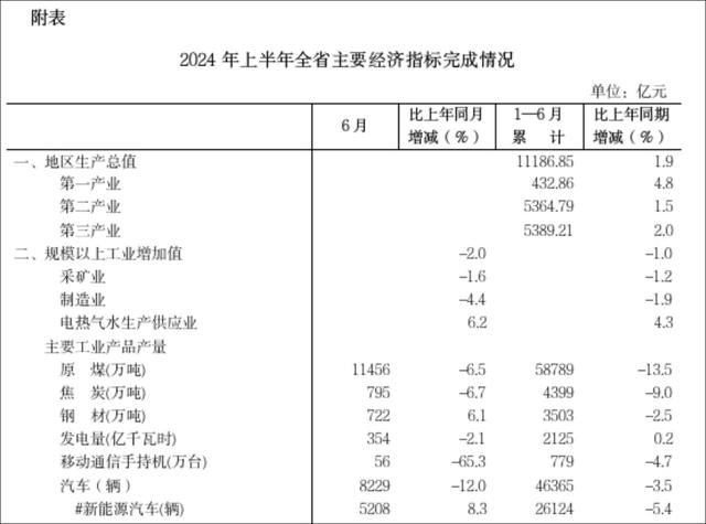 山西上半年主要经济指标完成情况山西统计局