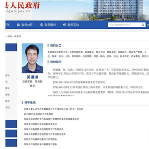 万年县政府官网吴谦谦更新后的简历 (图源:万年县政府官网)