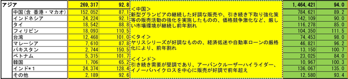 于上述两大市场相比,丰田汽车在亚洲则陷入“苦战”,这也是丰田汽车全球销量下滑的主要来源。数据显示,6月丰田汽车在亚洲市场销量仅269,317辆,同比下滑7.2%,其中在中国市场(含香港)销量为152,052辆,同比下滑12.9%,但较5月环比实现增长。丰田汽车表示,尽管推出全新的销售活动,但价格竞争加剧等严峻的市场环境持续,与同期相比有所下降。据零售数据显示,6月丰田汽车在华有五款车型销量过万,分别是锋兰达、RAV4荣放、威兰达、卡罗拉锐放、凯美瑞,销量分别为21951辆、16432辆、16161辆、12369辆、12281辆,这些车型较5月销量相比均有所增长,卡罗拉、赛那、汉兰达紧跟前后,分别为8870辆、8099辆、7054辆。