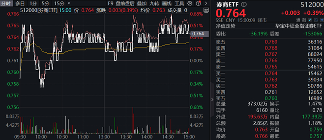 A股顶流券商ETF(512000)早盘低开震荡,随后企稳维持红盘波动,场内价格逆市收涨0.39%,全天成交额2.85亿元,环比放量。