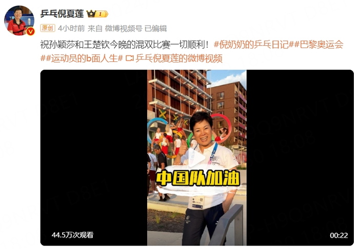 孙颖莎将对战61岁的卢森堡选手倪夏莲