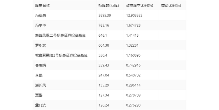 半年报显示,2024年上半年末公司十大流通股东中,新进股东为潘长风,取代了一季度末的宁波卓为企业管理合伙企业(有限合伙)。在具体持股比例上,箫峰凤凰二号私募证券投资基金持股有所上升,贾鹏持股有所下降。