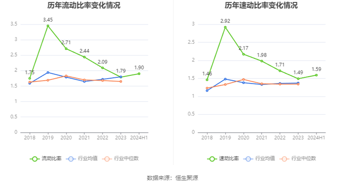 2024年上半年,公司流动比率为1.90,速动比率为1.59。