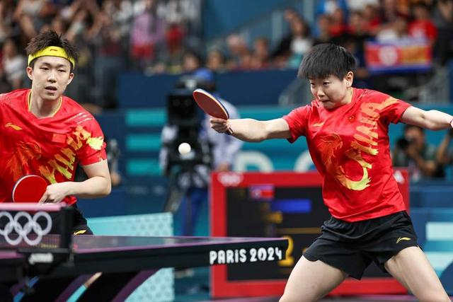 北京时间7月30日晚,巴黎奥运会乒乓球混双决赛上演“中朝决战”。中国组合王楚钦/孙颖莎4比2战胜朝鲜组合李正植/金琴英,夺得中国乒乓球队在本届奥运会的第一枚金牌。