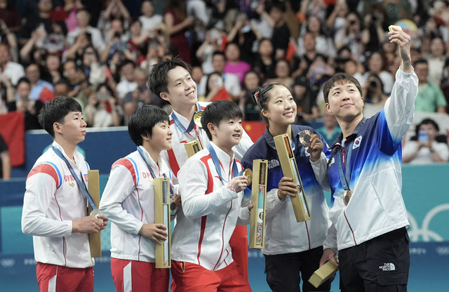 中朝韩运动员同框!乒乓球混双大合影来了