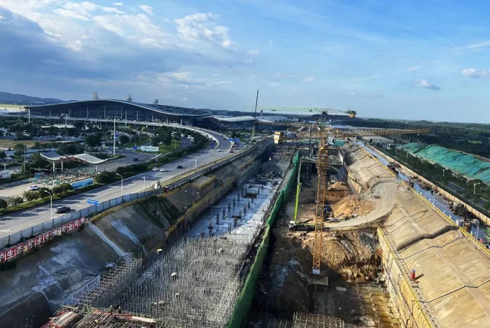 昌北机场高铁站与南昌地铁一号线北延线昌北机场地铁站相邻,目前,施工单位正在进行紧锣密鼓地进行施工作业。