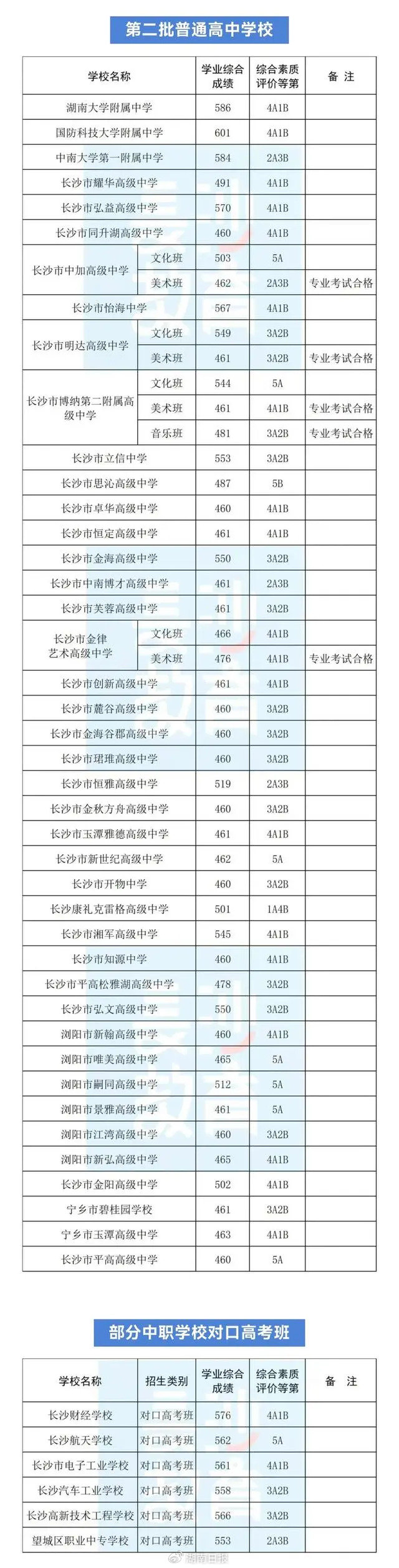 近日,长沙城区第二批高中学校招生录取线公布。和往年不同的是,该批次高中学校除了有子弟学校和民办普高学校外,还有长沙财经学校、长沙航天学校、长沙市电子工业学校、长沙汽车工业学校、长沙高新技术工程学校和望城区职业中专学校等6所公办中职学校的对口高考班。