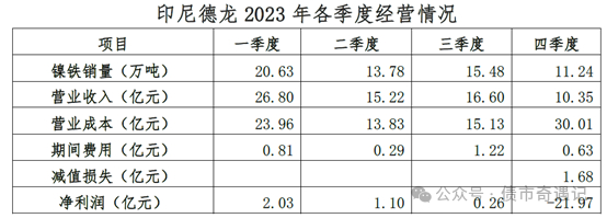 江苏德龙镍业与中国一重及其控股股东中国一重集团有限公司(一重集团)亦在印尼有镍铁冶炼项目合作(印尼德龙,一重集团持股28%、中国一重持股 23%、江苏德龙镍业持股48%、响水康阳贸易有限公司持股1%),印尼德龙预计2023年度的净利润约为负18-22亿元,中国一重按照持股比例计算预计确认投资收益约亏损4-5亿元。一方面,“因印尼供应量大幅增加,国内需求端持续疲软,2023年3月以来镍铁价格已大幅下降,2023年10月开始继续呈现断崖性下跌态势”,镍铁价格2023年全年降幅32.72%,其中第4季度降幅21.12%。另一方面,检修费用4季度增加3.85亿元、受当地政府配额审批延缓等原因导致4季度成本增加6.13亿元以及煤炭采购价提升、运费增长以及存货减值等共同导致了4季度的亏损。