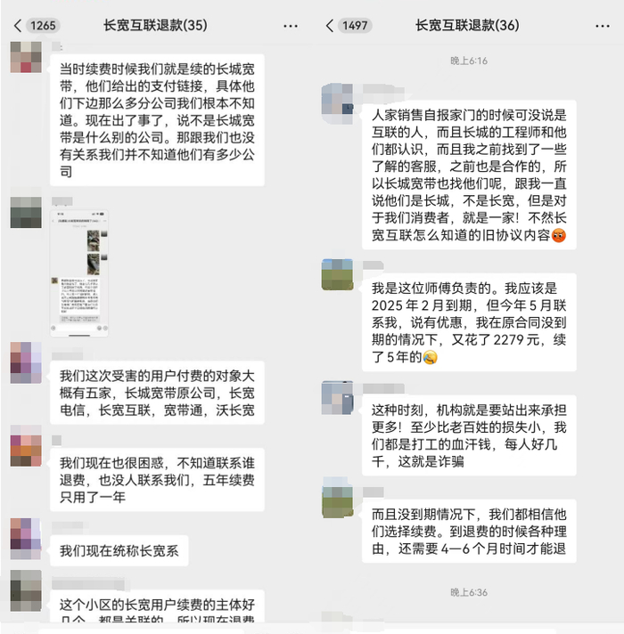 在多数业主看来,长城宽带的做法,“像极了注册空壳公司圈钱跑路的套路”。据介绍,目前,有的业主已经就长城宽带跑路一事发起民事诉讼,另外的一些业主开始组建了140余人的维权沟通群和40余人的退款交流群,陆续通过全国12315、黑猫投诉等平台发起投诉。