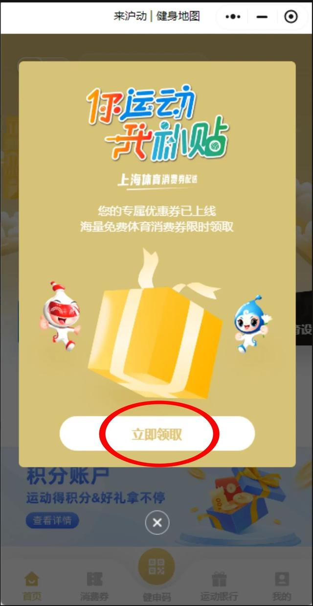 微信搜索“来沪动”,点击【来沪动丨健身地图】进入消费券领取界面。