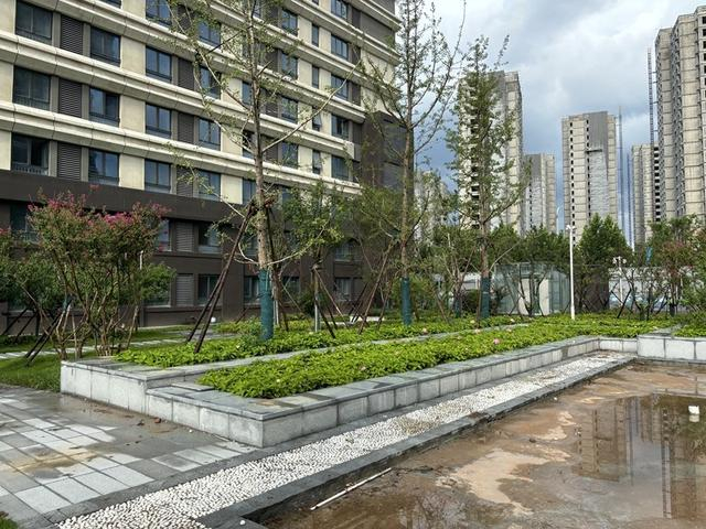 除此以外,小区内绿化基本完工,绿植随处可见,花坛内更是种植了绣球等多种美丽植被,工作人员介绍说,未来绿地率将达到35.01%,还将配备健身器材等硬件设施,以满足住户们的日常需求。