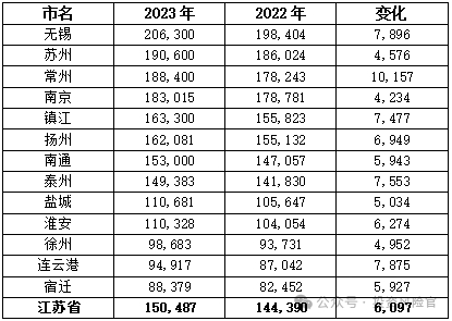 人均GDP方面,2023年江苏全省人均GDP达15.05万元。