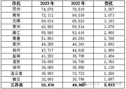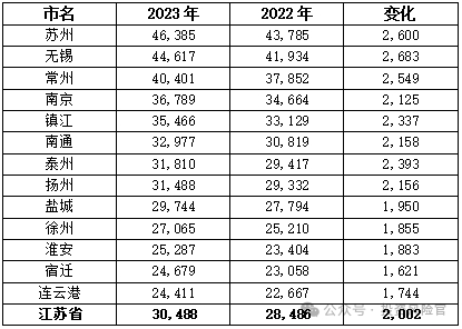 2022年-2023年江苏省13市居民人均可支配收入如下表(单位:元):