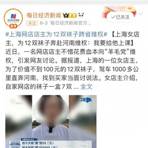 今年,上海一位女店主因价值不到100元的12双袜子,不惜高额成本,驾车行驶1000多公里,只为寻找并维权一位“羊毛党”买家。