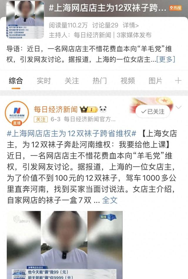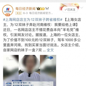 今年,上海一位女店主因价值不到100元的12双袜子,不惜高额成本,驾车行驶1000多公里,只为寻找并维权一位“羊毛党”买家。