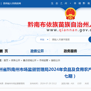 贵州省黔南州市场监督管理局2024年食品及食用农产品监督抽检结果信息公示(第七期)