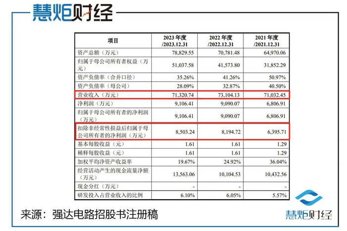 而2023年财务数据的出炉,强达电路此前连续三年营收增长的势态被正式终结。