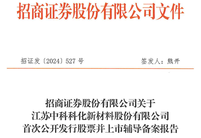 7月24日,中科科化在江苏证监局进行IPO辅导备案登记,辅导机构为招商证券股份有限公司。据官方披露,中科科化拟在科创板上市。