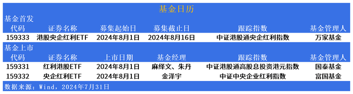 具体来看,万家港股央企红利ETF(159333)将于明日开始募集。国泰红利港股ETF(159331)将于明日上市。