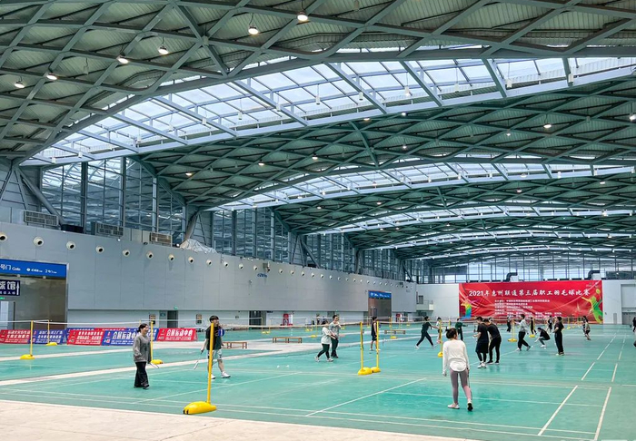 体育馆设有网球场、羽毛球场,篮球场等体育设施。训练馆可举办中、小型体育比赛、团体活动、羽毛球、篮球培训班。