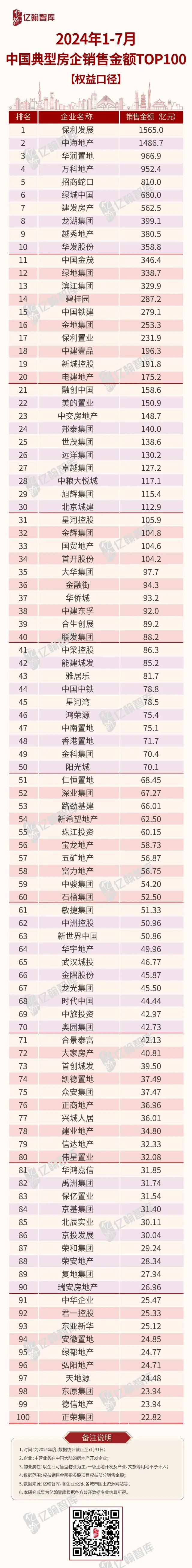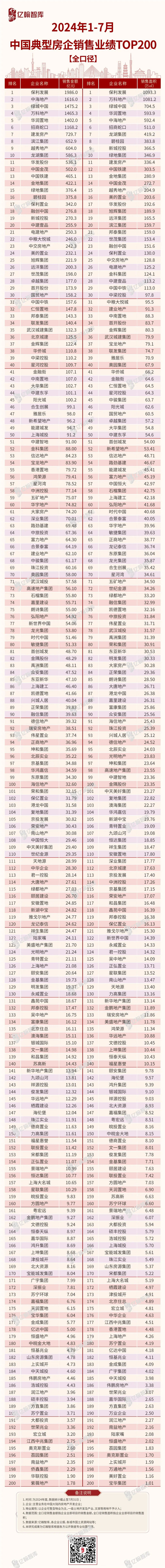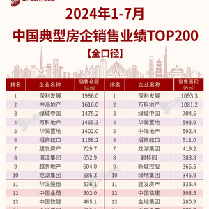 2024年1-7月中国典型房企销售业绩TOP200研究报告【第121期】
