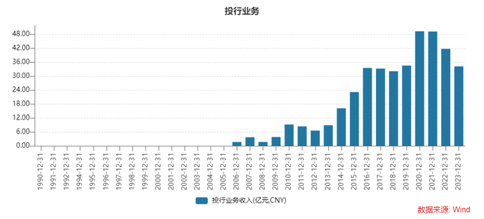 Wind数据显示,海通证券的投行业务收入自2020年登上49.39亿元的高峰以后,已经连续三年出现下滑。