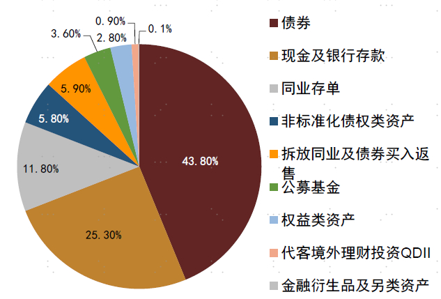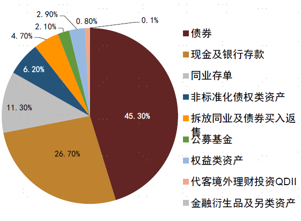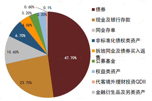 注:理财年报中一般只披露各类资产占理财投资资产余额的比例,而不直接披露理财持有各类资产的绝对量,而且“理财投资资产余额”与“理财产品存续余额”可能也有一定差异。