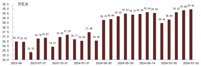 总的来说,2024年上半年非保本理财存续余额继续上升,但节奏二季度规模增长相对更快。配置端,债券、非标和权益类资产占比同比环比均下降,基金以及拆借类资产占比同比环比均上升。银行存款占比则是环比下降同比上升。2024年上半年含理财公司在内的非保本理财规模出现回升,主要是在今年二季度,背后或与存款手工补息监管有关。同时今年以来债市整体表现较好使得理财回报相对较高也在一定程度上吸引部分资金。根据普益标准数据推算,截至2024年7月26日,理财规模已经回升至29.65万亿元,相比6月底回升1.14万亿元。资产配置端,受到监管政策影响,理财减少存款的配置占比,提升了资金拆借类资产占比。同时也提升了基金的投资占比,其中主要是债券类基金,或与理财通过基金产品增加债券久期有关。