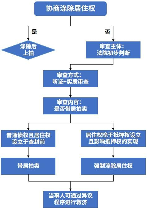 对于涉案房屋是否带居住权拍卖,可以按上图所示进行判断。