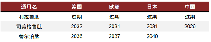 图表7:主要GLP-1RA核心专利到期年份