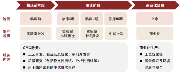 多肽生产商提供临床前、临床各阶段到药品获批上市后不同规模和批次的药物,包括非GMP、GMP原料药中间体和制剂。CMC服务包括原料药工艺开发、放大生产、分析方法开发与验证、稳定性研究以及相关批次记录等文件包准备工作。多肽生产商核心价值在于降低研发和生产成本,提高效率。