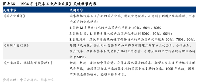 丰田在华布局的第一阶段选择了展开零部件企业合资,主要出于几方面考虑:1)根据94年出台汽车工业产业政策,零部件国产化率在40%+的汽车可享受优惠汇率。因此在整车项目前,提前通过一般零部件的本土化从而达到优惠税率,对丰田而言有利可图。2)1950年代起,国有集团一汽、二汽的建立就拉动了汽车零配件的初步本土化生产。一汽的建设带动了86个零件厂技改,60%以上零配件在厂内生产,但此时零配件技术水平较低,且多为卡车一般配件。1980年代中国轿车产业起步,轿车配套零部件开始快速发展。天津1986年以CKD形式与日本大发合作,其后为夏利培育了一批配套零配件厂商,包括汽车装饰、底盘部件等,人员、技术等方面均有一定基础储备。因此相比于中国本土技术薄弱,极大依赖于海外技术引进的轿车发动机而言,丰田将零部件作为进入中国第一步,投入相对少、技改进程快,是性价比较高的选择。