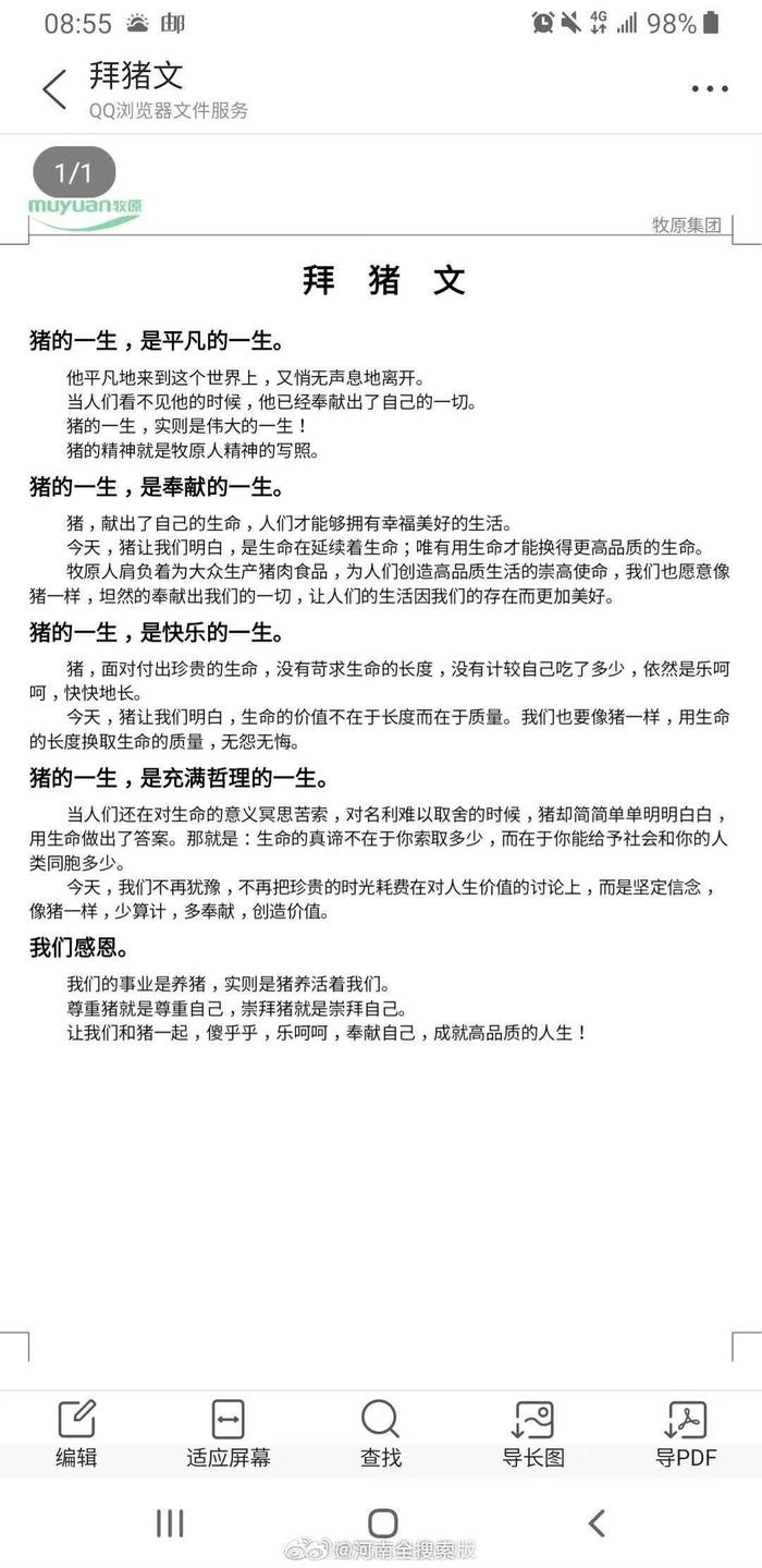 这篇拜猪文,据不少网络言论,还当作了牧原股份员工必须学习的重要文献。