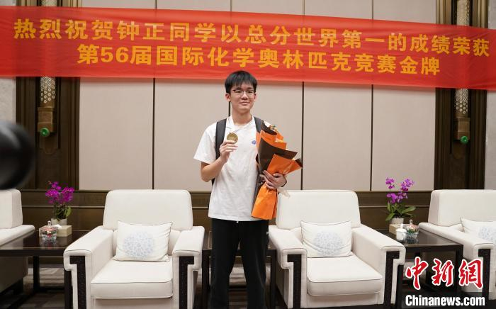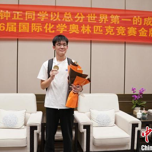 中新网海口7月31日电(陈英清)来自海口中学的钟正近日在第56届国际化学奥林匹克竞赛(IChO)中获得金牌并取得赛事第一名的成绩,实现了海南省在五大学科国际奥林匹克竞赛中金牌“零”的突破。31日,钟正在结束竞赛后抵达海口时表示,取得成绩是积累的结果,他很享受比赛的过程。