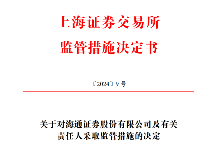 请海通证券主要负责人携带有效身份证件到本所(地址:上海市浦东新区杨高南路 388 号)接受监管谈话。请海通证券及有关责任人引以为戒,认真查找和整改问题,建立健全和严格执行投行业务内控制度、工作流程和操作规范,诚实守信、勤勉尽责,切实提升投行业务质量,并严格按照公司制度进行内部问责。自收到本决定书之日起 20 个交易日内,应向本所提交书面整改报告。