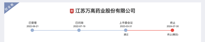 2023年3月,万高药业创业板IPO过会。上市委审议会议中,上市委就万高药业推广服务费问题、关联交易问题、申报前新增股东问题等进行追问。过会后,万高药业未有提交注册申请,直到逾一年后撤回IPO。