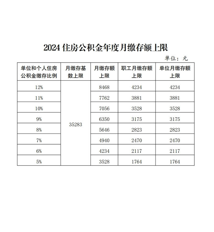国管公积金:2024住房公积金年度月缴存基数上限为35283元