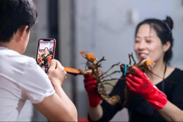 本来不好意思露面的李园园试着在网上卖海鲜,让她没想到的是一天能卖出20多包,不到一个月可以赚上六七千元。她看到了希望,索性一口气买了5部手机,打算在电商的路上闯一闯。平时,她白天拍短视频,晚上直播,第二天下午和丈夫去海鲜市场卸货、打包、发货,“市场上的力气活可难不倒我,男人能做的,我也能做。”