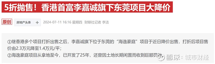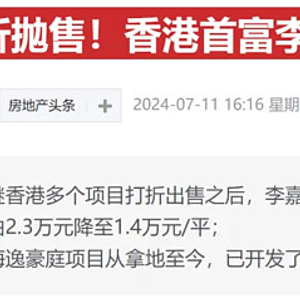 7月份中旬,才遭遇李嘉诚做空,其位于厚街的海逸豪庭半价出售。