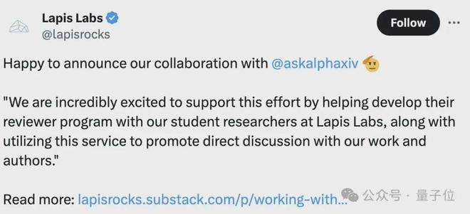 目前,已经有不少实验室宣布与AlphaXiv合作,促进学术研究进步。