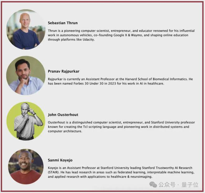 除了主创之外,项目还有多名业内大佬作为顾问,比如曾创立了谷歌X实验室和自动驾驶团队的Sebastian Thrun教授。