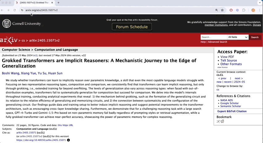 一开始,AlphaXiv论坛会确认你的研究领域和方向。这里延续了arXiv的风格,arXiv作为最大的开放获取预印本存储库,拥有近240万篇学术论文,涵盖人工智能、医学、计算机科学、物理学、密码学、数字健康等。