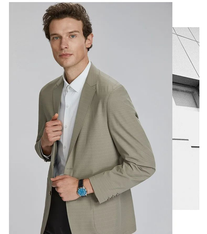 再看冰丝面料款式,这几款西服在面料和功能上大胆创新,用冰丝面料制作而成的西服,解决了西装闷热的困扰,特别适合现在夏天直接穿!