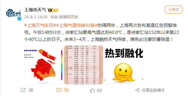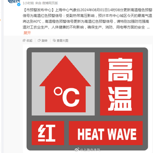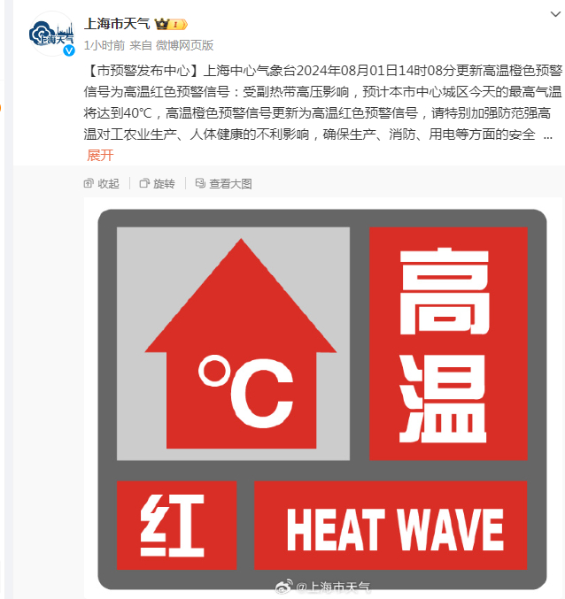 气温破40℃!时隔两年,上海发布高温红色预警!中国气象局:8月我国还将有两轮高温天气过程