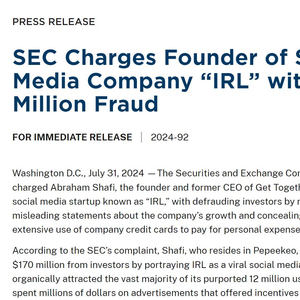 美国SEC的公告则提到另一个问题,IRL在“附带下载激励措施的广告”上花了数百万美元,然后通过大幅做低公司营销费用,以及通过第三方平台付款等方式向投资人隐瞒了这笔支出,以打造应用非常受欢迎的假象。SEC同时指出,沙菲和他的未婚妻伍特曼还瞒着投资人,使用IRL的商务信用卡用于个人开支,花费几十万美元购买服装、家居用品和支付旅行费用。