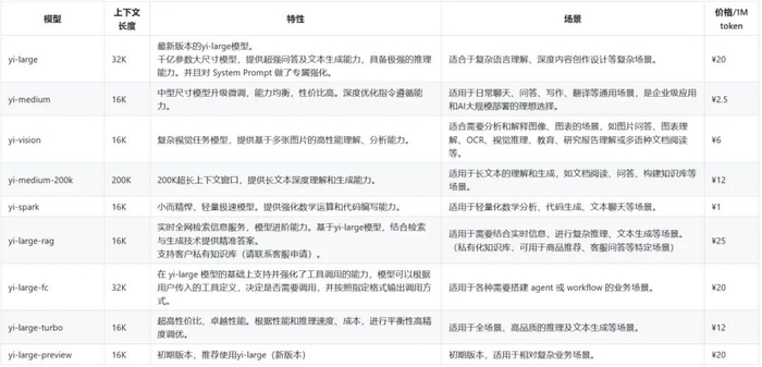 (1)千亿参数模型Yi-Large闭源模型