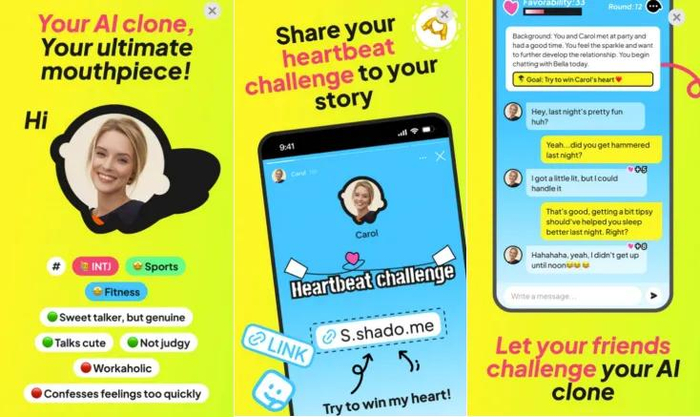 Shado主打熟人间的社交游戏,用户先创建一个AI智能体,克隆用户的性格、爱好及婚恋观念,使得AI智能体能像用户本人一样交流。
